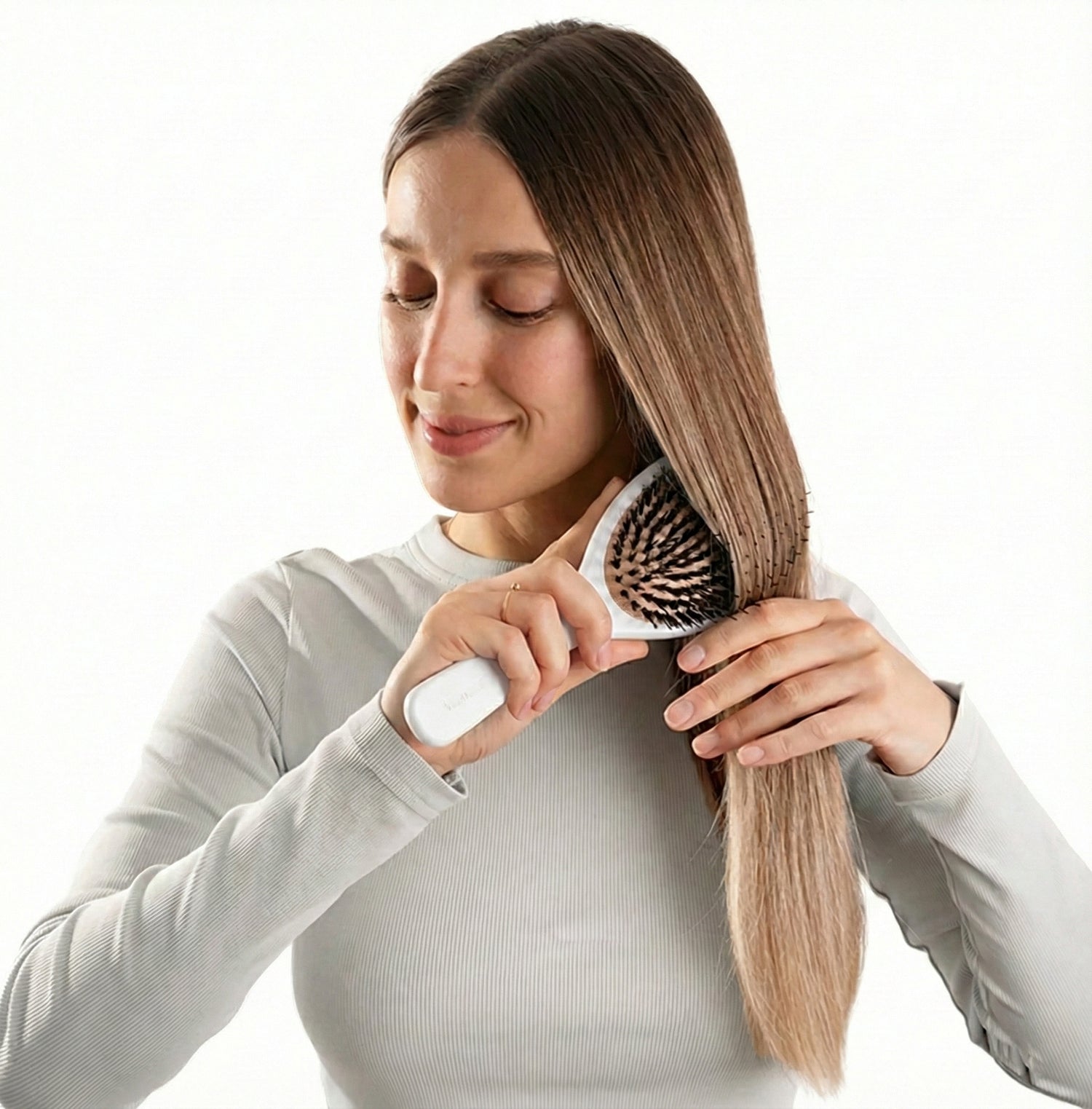 This brush gives my hair so much shine! And it makes my scalp feel energized! It’s revitalizing! ❤️😍 I honestly look forward to my morning routine now just so I can use it. It feels like a mini massage every time I brush, and my hair has never looked this glossy or felt this soft before. Highly recommend!